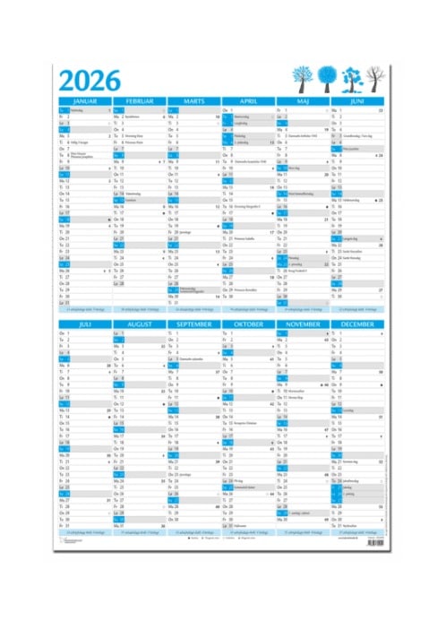 A2 DOBBELT VÆGKALENDER 2 X 6 MDR. BLÅ – 2025