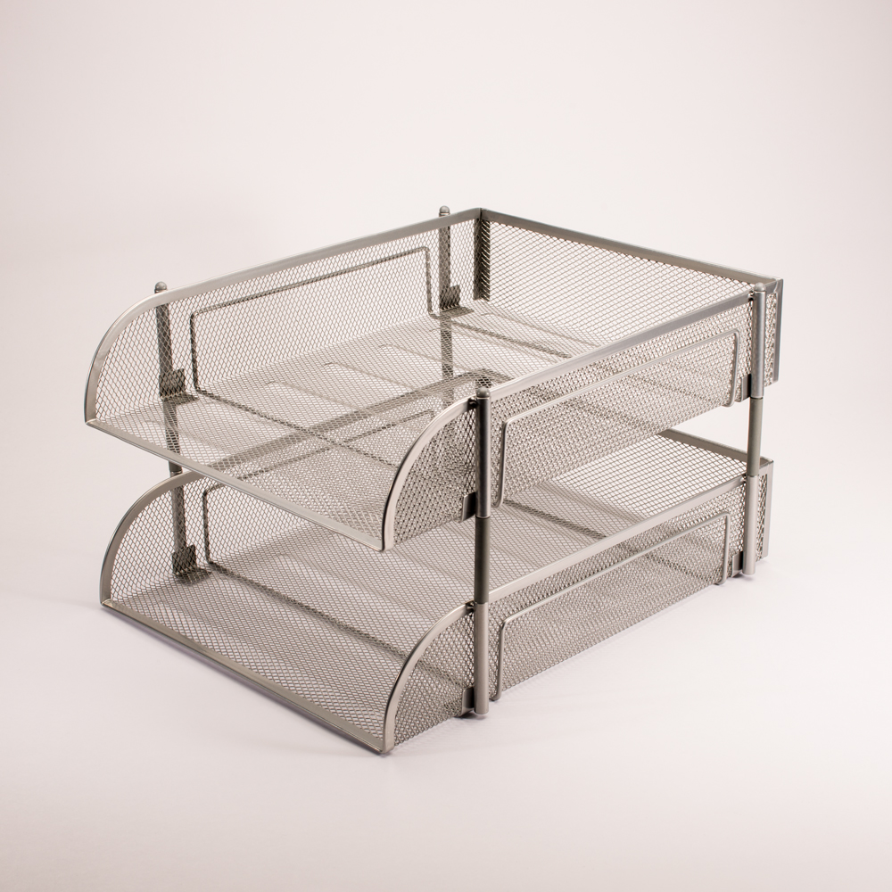 Brevbakke Til Forsendelse - produktbilledeBREVBAKKE I METAL TRÅD SILVER M/2 BAKKER