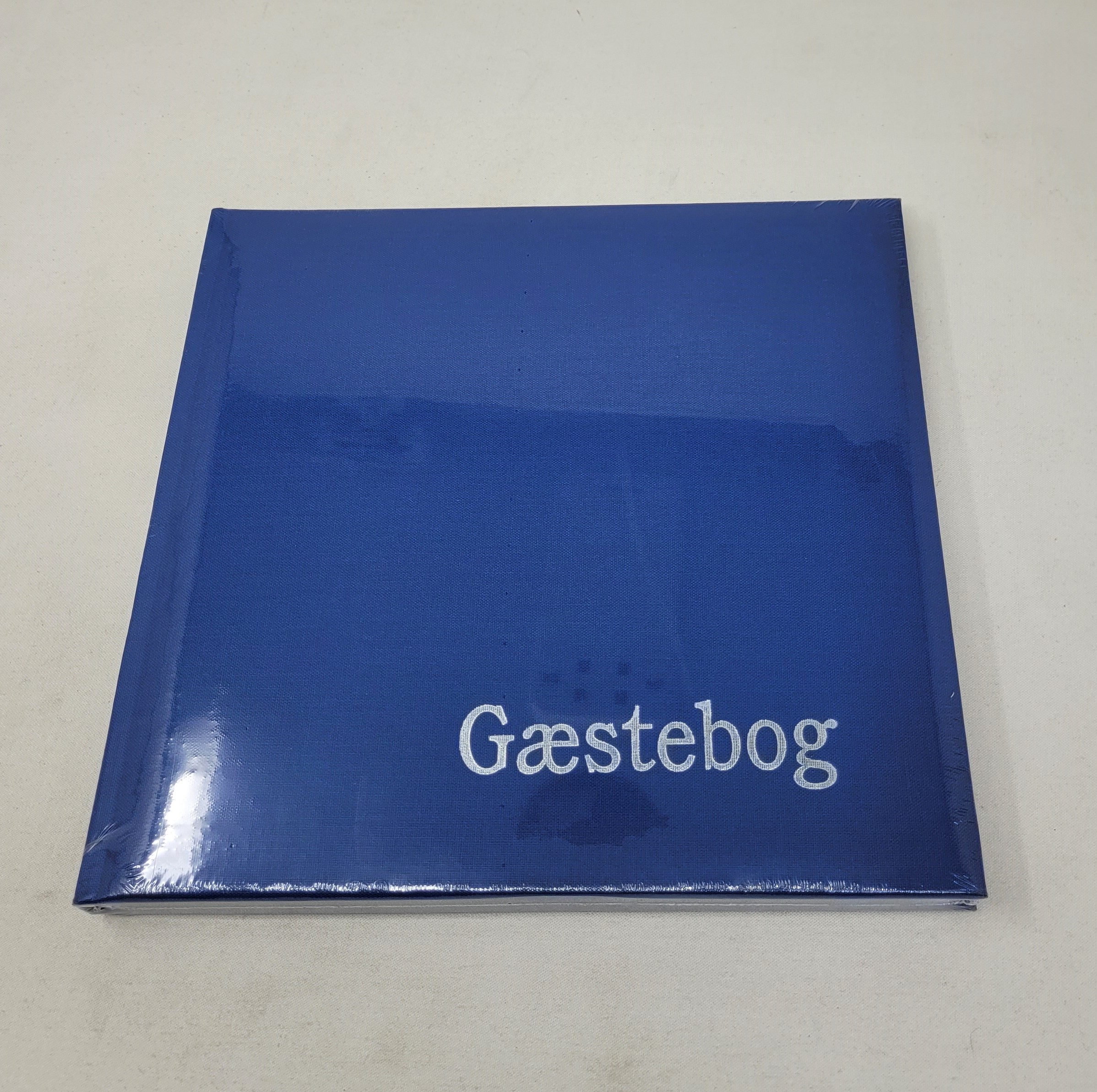 Gæstebog lærred med tryk – 23 x 25 cm – kongeblå
