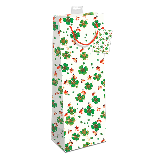 Gavepose Til Forsendelse - produktbilledeGAVEPOSE TIL FLASKE ” FIRKLØVER”
