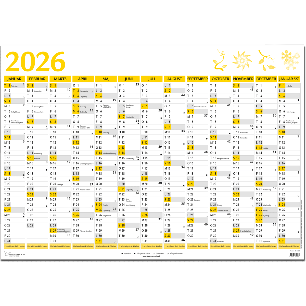 KÆMPEKALENDER 13 MDR 2026 GUL 98×68,5 CM