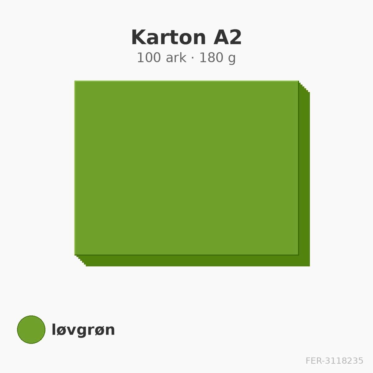 Karton A2 i løvgrøn med 180 g/m². 100 ark. Til plakater, skilte og kreative projekter.
