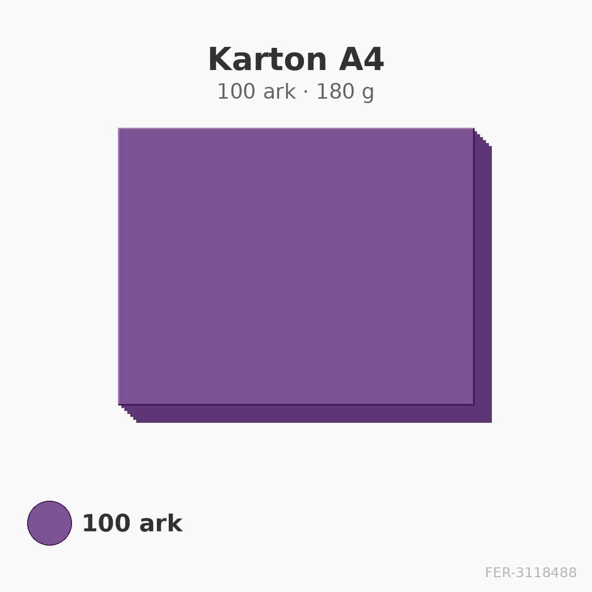 Karton A4 i purpur med 180 g/m². 100 ark pr. pakke.