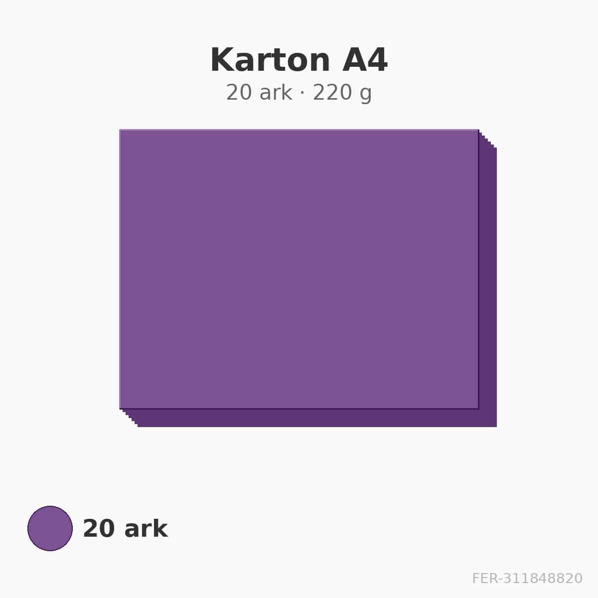 Karton A4 i purpur med 220 g/m². 20 ark pr. pakke.