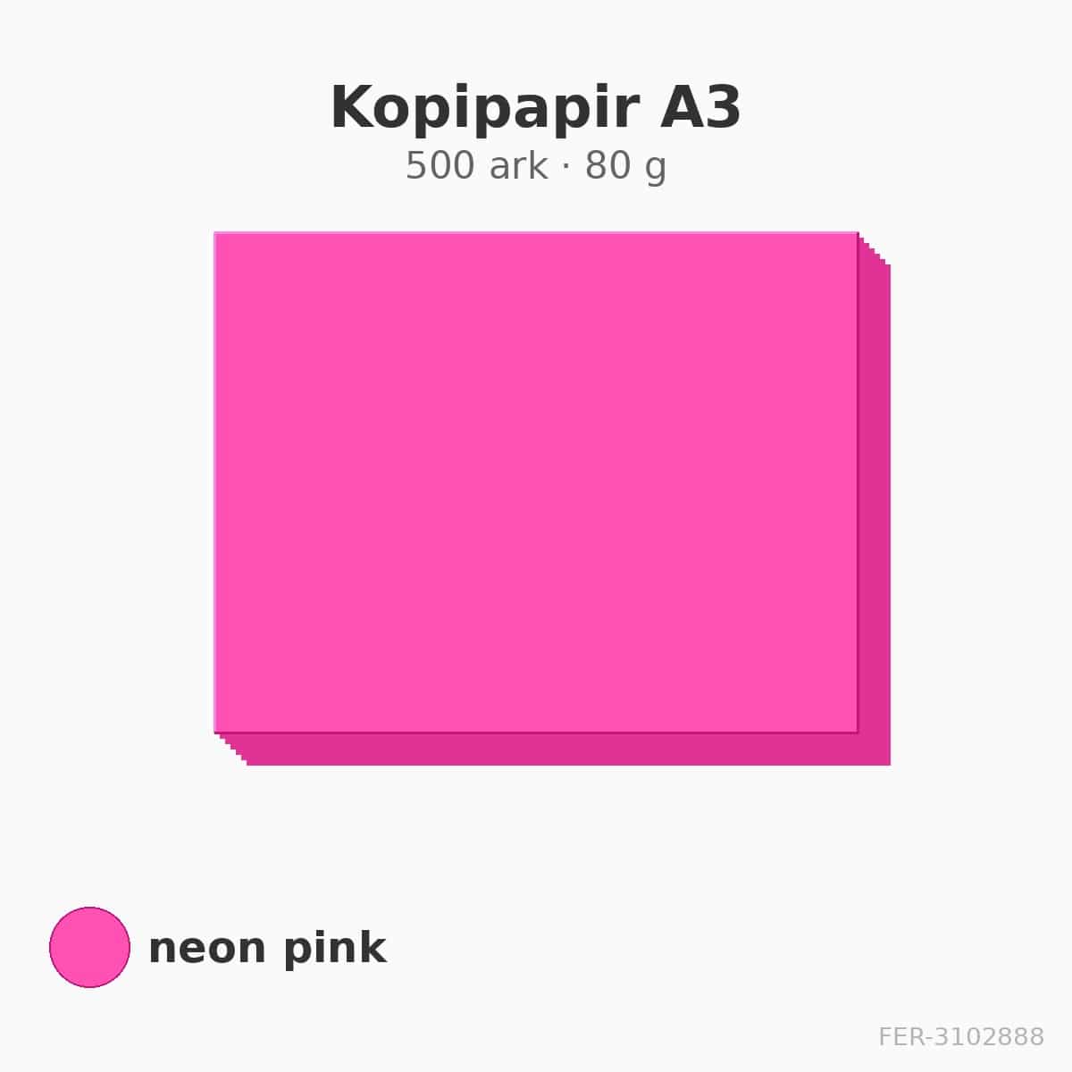 Farvet kopipapir A3 i neon pink med 80 g/m². 500 ark.