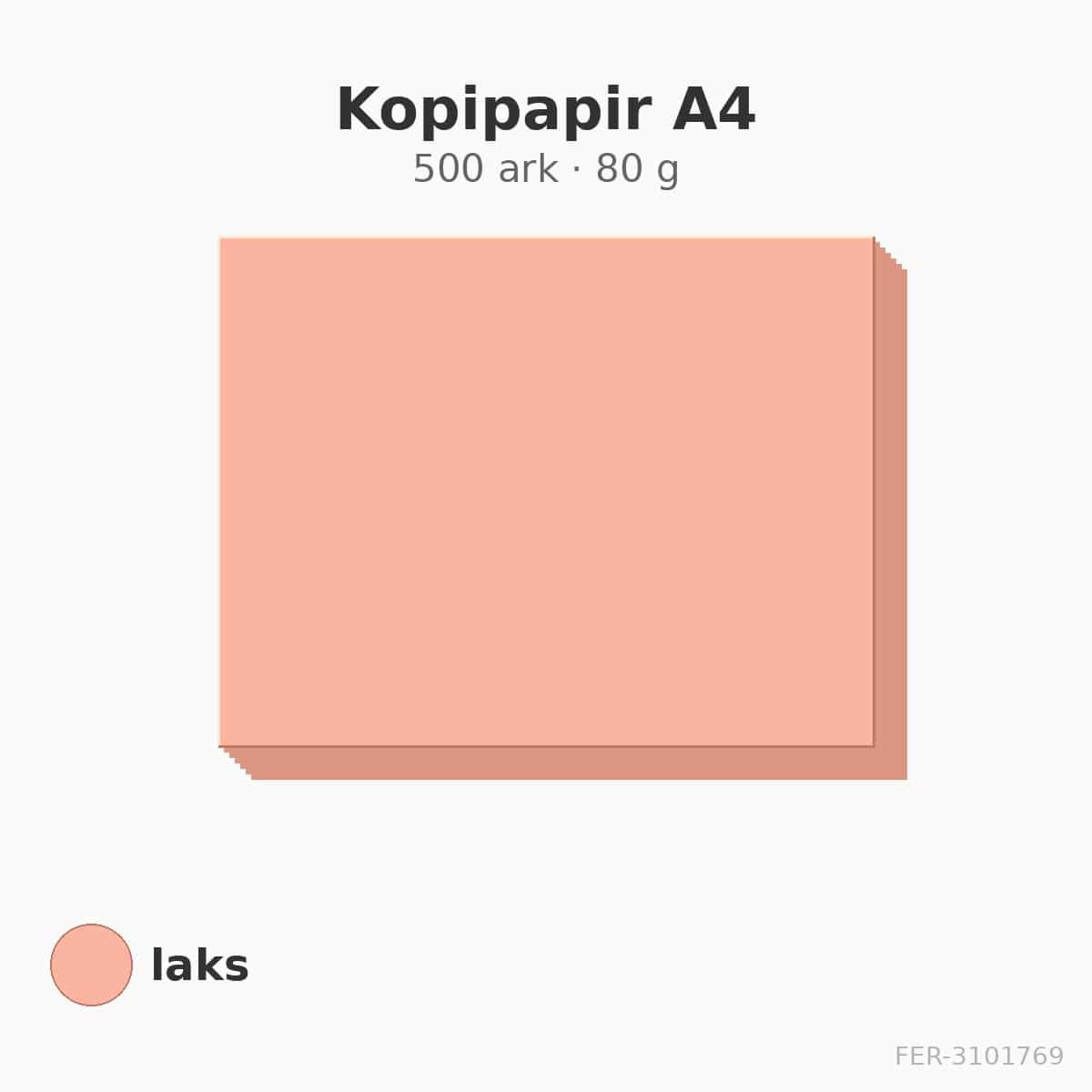 Farvet kopipapir i A4-format i laks. Kompatibelt med laser- og inkjetprintere. Til farvet print, flyers og kreativt arbejde.