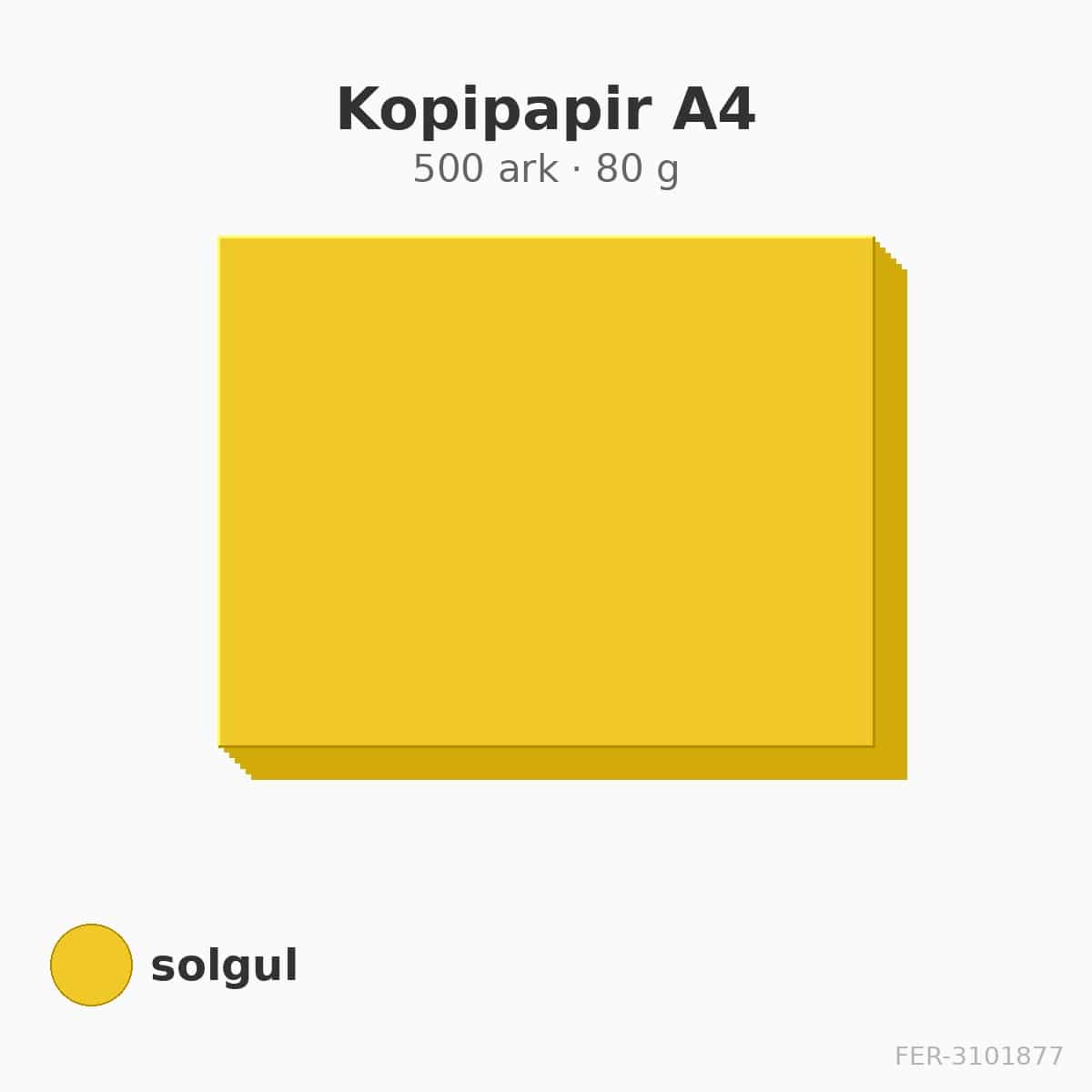 Farvet kopipapir i A4-format i solgul med 80 g/m². 500 ark pr. pakke. Kompatibelt med laser- og inkjetprintere.