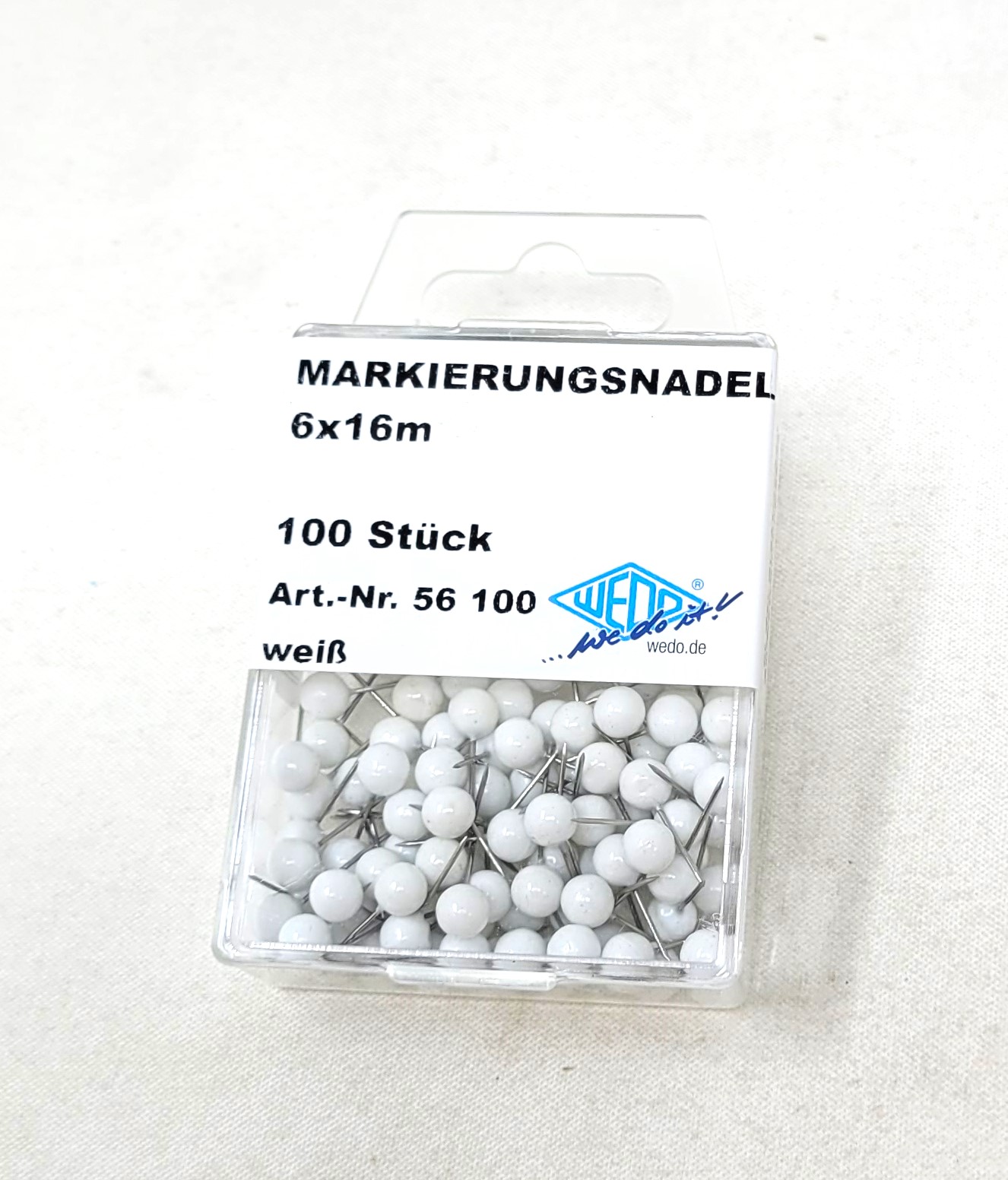 Kortnåle Hvid Til Forsendelse - produktbilledeKORTNÅLE 16MM Ø6MM – HVID 100 STK