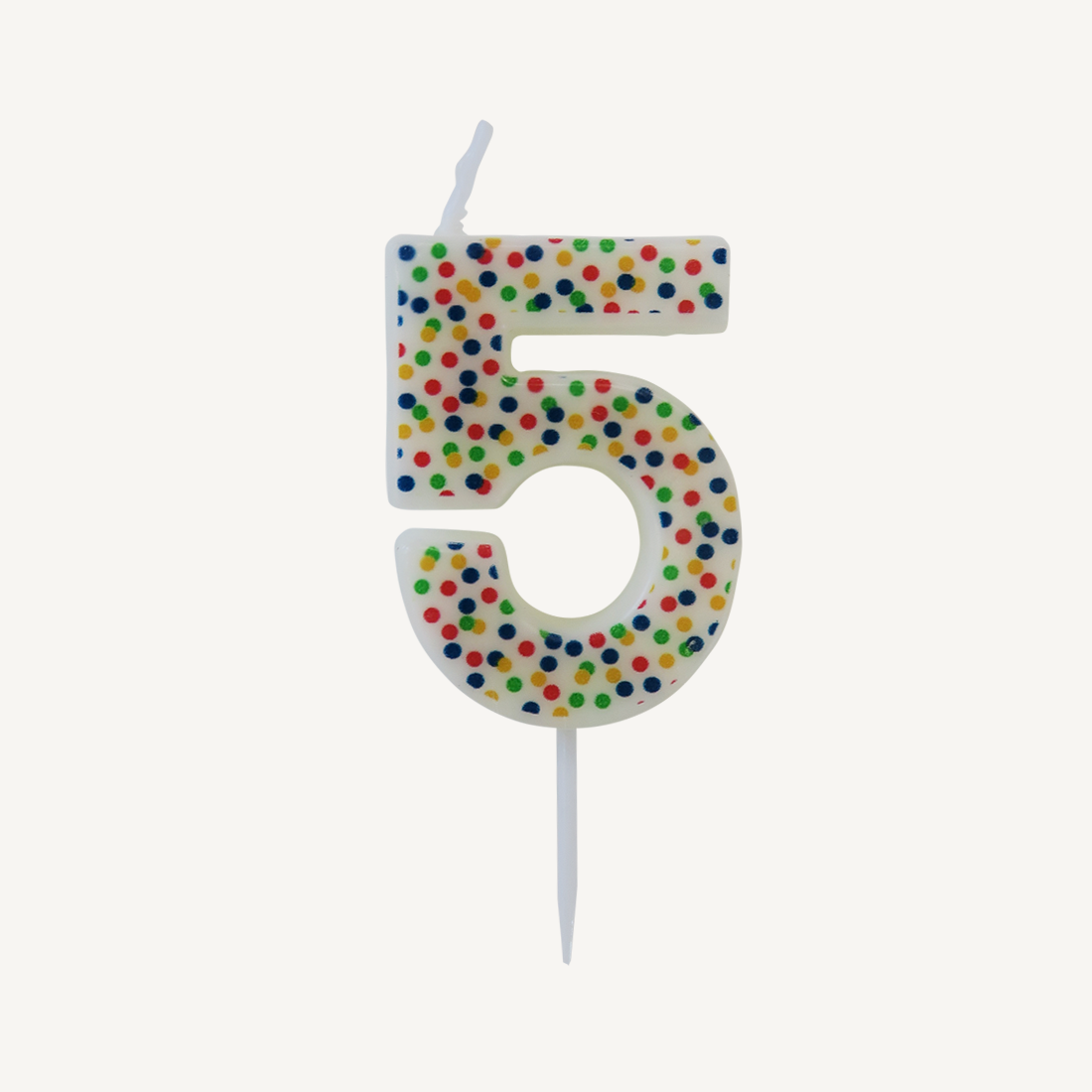 Lys Til Forsendelse - produktbilledeLYS TIL KAGE M/PRIKKER TAL 5 H: 7,5 CM. 1 STK.