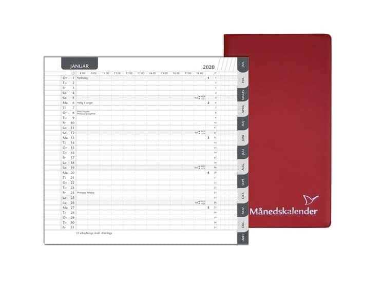 Månedskalender 2024 Rød 2 Fløjet M.blok fra RE ApS. Bestil nemt online med hurtig levering til hele Danmark.