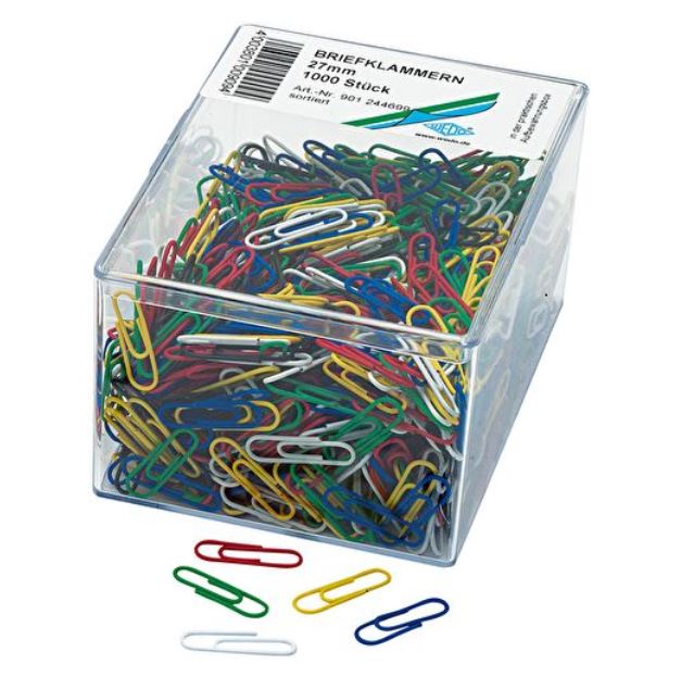 Papir Til Forsendelse - produktbilledePAPIR CLIPS WEDO 27mm 1.000 STK – ASS FARVER