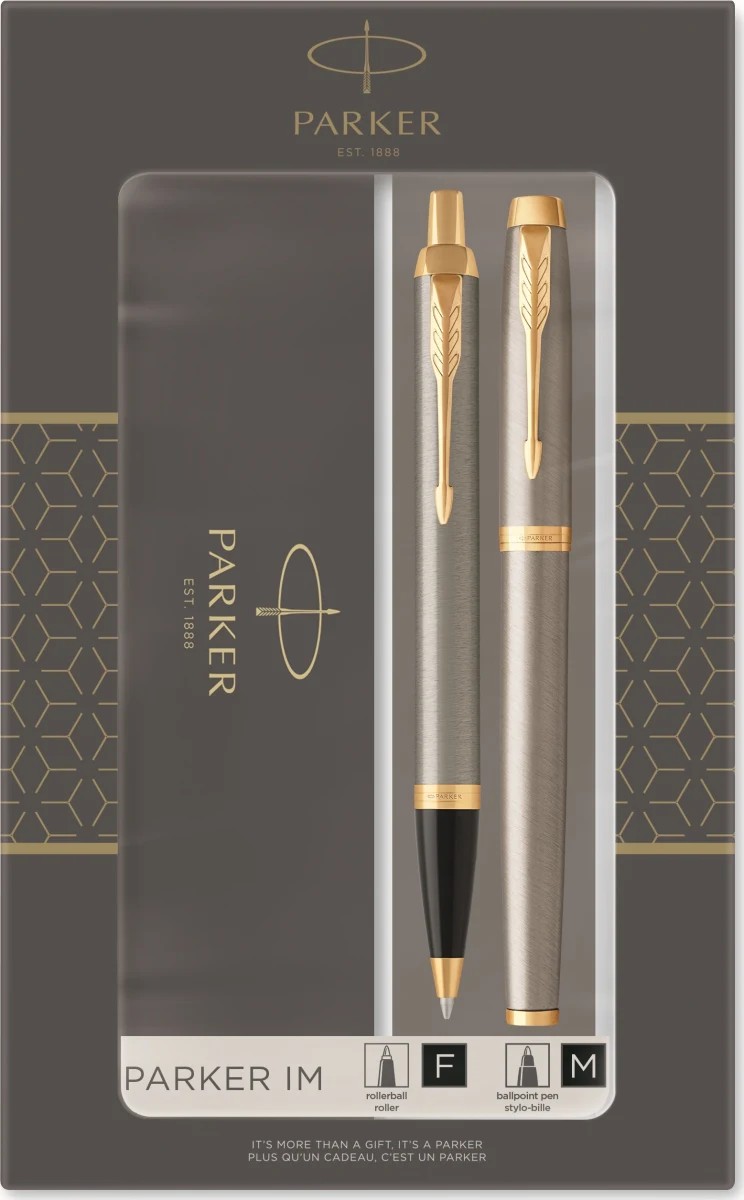 PARKER IM – SÆT – BALLPEN OG ROLLERBALL – BØRSTET STÅL