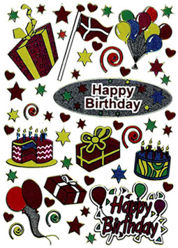 Stickers Til Forsendelse - produktbilledeSTICKERS TILLYKKE / HAPPY BIRTHDAY