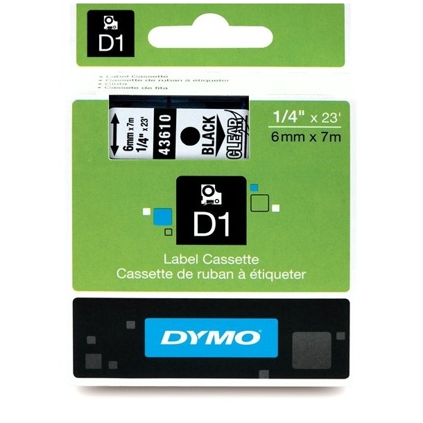 DYMO D1 Tape 6mm Sort paa Klar – 43610