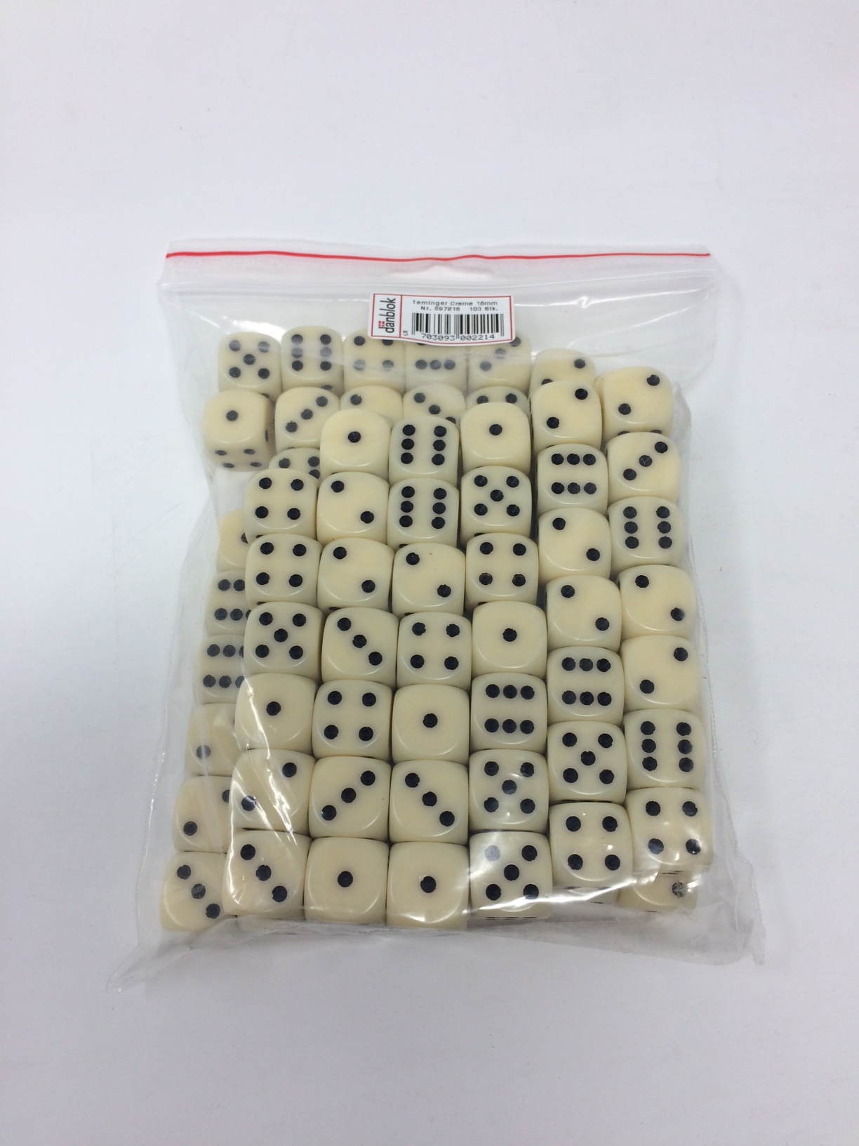 Terninger Til Forsendelse - produktbilledeTERNINGER 16mm – CREME (100 stk)