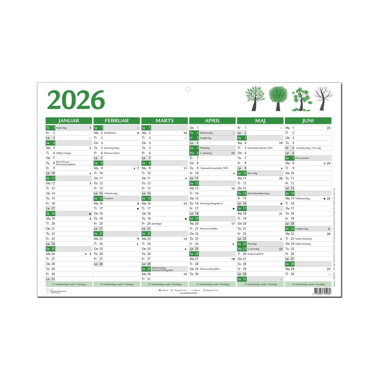 VÆGKALENDER A3 GUL 2024 2×6 MDR fra RE ApS. Bestil nemt online med hurtig levering til hele Danmark.