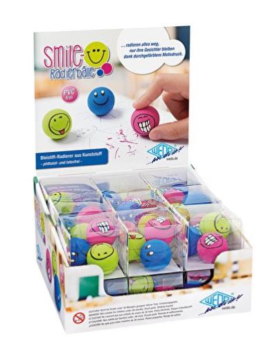 Viskelæder Til Forsendelse - produktbilledeVISKELÆDER – SMILEY 3 PR BOX ASS FV. 18 BOX I DISP